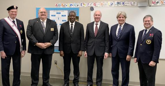 Left to Right Sir Knight John Haag Color Corp Commander - New Sir Knight Robert Willie - New Sir Knight Samuel Okyne - New Sir Knight Dan McCaskill - New Sir Knight Andrew Westoff - Faithful Navigator Sir Knight Chuck Belinski