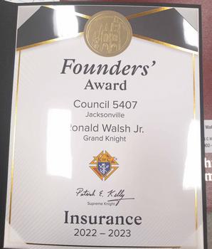 Council 5407 was presented for with both The Founders Awards, and the Columbian Award for the 2022/23 Fraternal Year